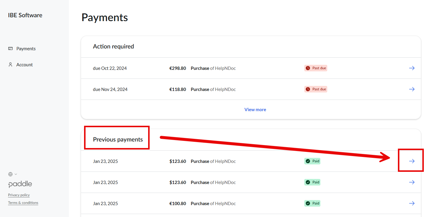 - Ouvrez la section Previous payments